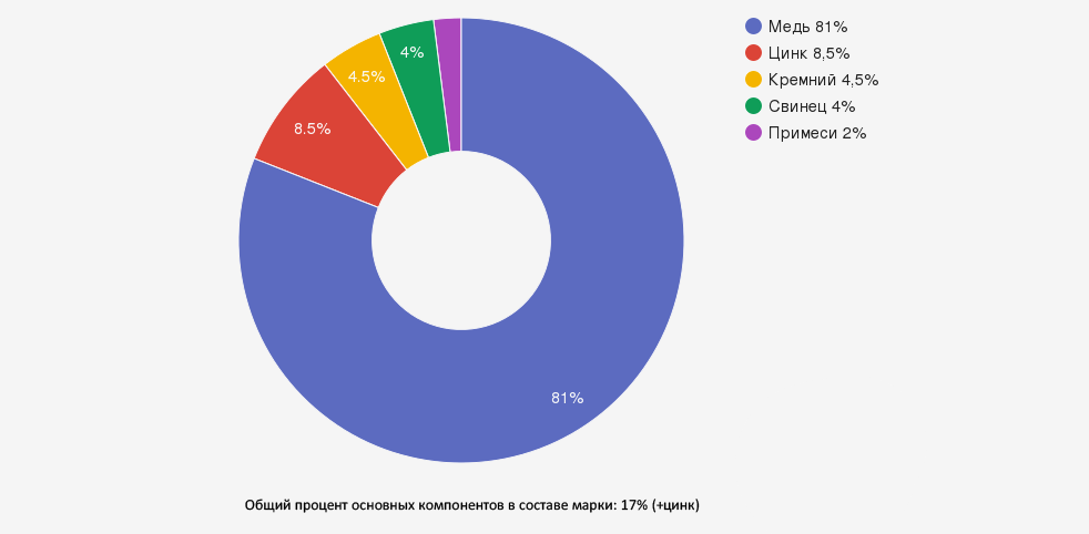 | Цинк (Zn) | остальное | Второй основной компонент, улучшает литейные свойства, снижает стоимость |
